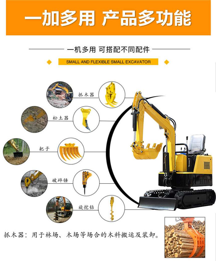 KV10带蓬小型挖掘机广泛应用于果园苗圃、园林绿化、山地开荒、农田改造、开挖自来水及电缆等管道、室内拆除、地面破碎、蔬菜大棚、养殖场、矿井及隧道施工、河道清淤等农林牧业种植、小型土石方工程、市政工程的